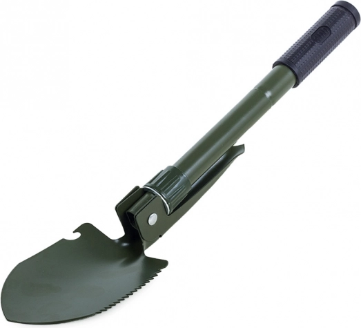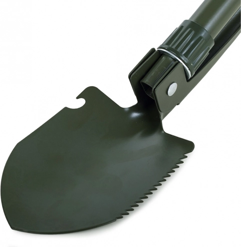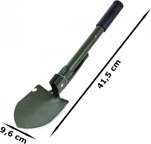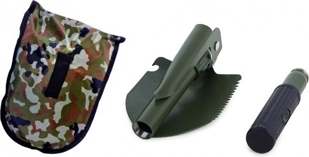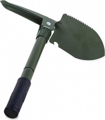 Ta zložljiva večnamenska lopata združuje lopato, kramp, žago in odpirač v enem kompaktnem orodju. Izdelana je iz visokokakovostnega jekla, ki prenese zahtevne razmere v naravi in pri vsakodnevni uporabi. Nedrseč ročaj zagotavlja zanesljiv oprijem in varno delo.