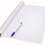 Praktična samolepilna bela tabla za pisanje s suho brisljivim flomastrom v dimenziji 200 × 45 cm. Preprosto jo nalepite na raven, razmaščen površin in takoj lahko ustvarjate zapiske, načrte in risbe. Zahvaljujoč mreži na hrbtni strani jo zlahka prilagodite na želeno mero, ne poškoduje površine in po odstranitvi ne pušča sledi. Priložen je moder flomaster.