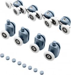 Obnovite tekoče in tiho delovanje svoje tuš kabine s praktičnim setom koles. Set vključuje štiri zgornje dvojne in štiri spodnje enojne koleščke s kakovostnimi ležaji, ki zagotavljajo gladko in stabilno drsenje vrat. Zaradi kombinacije plastike in proti koroziji odpornega jekla so valjčki odporni na vlago in dolgotrajno uporabo.