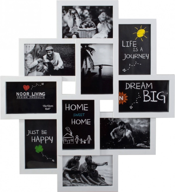 Ta velik 3D okvir elegantno združi do 10 posnetkov formata 10×15 cm (vidna površina 9×14 cm). Zahvaljujoč plastični zasnovi brez stekla je varen, lahek in enostaven za obešanje, zato se odlično podaja v dnevno sobo, spalnico ali pisarno.