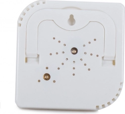 Naprava ima zložljivo stojalo za postavitev na mizo ali polico ter odprtino za obešanje na steno. Univerzalen bel dizajn se poda vsakemu interierju in tehničnemu okolju.