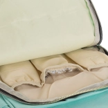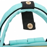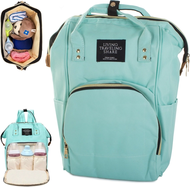 Na sprednji strani so trije izolirani termo žepi za stekleničke ali hrano, ob straneh pa dva prostorna žepa z vlago-odporno podlogo. Nahrbtnik lahko udobno pritrdite na voziček, nosite na hrbtu zahvaljujoč nastavljivim naramnicam ali v roki za čvrste ročaje. Trpežen material OXFORD je kos vsakodnevni uporabi in slabemu vremenu.