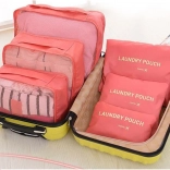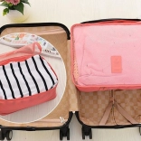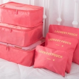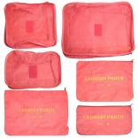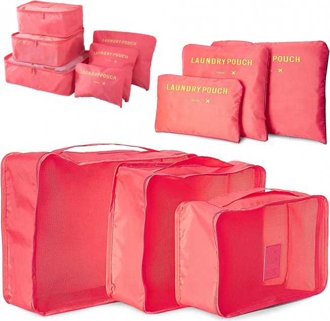 Praktičen komplet 6 potovalnih organizatorjev v elegantni lososovi barvi vam pomaga urediti oblačila, perilo, obutev in kozmetiko ter ohraniti kovček pregleden. Tri večje kocke z mrežico za prezračevanje in dvosmerno zadrgo, tri manjše neprosojne torbice za perilo in dodatke. Lahek, kompakten in enostaven za čiščenje komplet za vsako pot.
