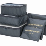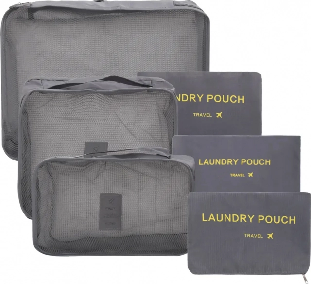Praktičen komplet 6 potovalnih organizatorjev vam pomaga pregledno spakirati oblačila, spodnje perilo, obutev in kozmetiko. Tri večje kocke imajo obojestransko zadrgo, mrežast panel za zračenje in ročaj, manjše neprosojne vrečke z zadrgo pa so idealne za umazano perilo in drobnarije. Lahka tekstilna izvedba, enostavno vzdrževanje in prihranek prostora v kovčku.
