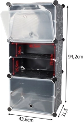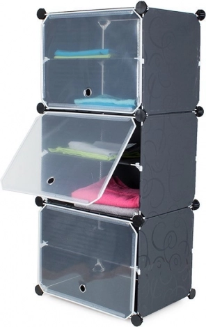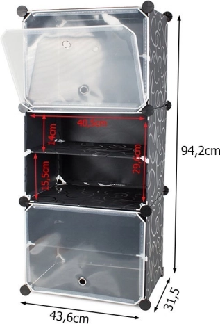 S to modularno polico lahko imate svoje čevlje in dodatke vedno pregledno urejene. Omara je sestavljena iz treh segmentov, je lahka in hkrati stabilna. Njena modularna konstrukcija omogoča enostavno montažo in prilagodljivost v razporeditvi glede na vaše potrebe. Kovinski okvirji se preprosto povežejo s pomočjo ABS povezujevnih elementov.