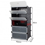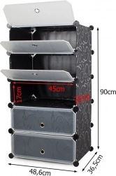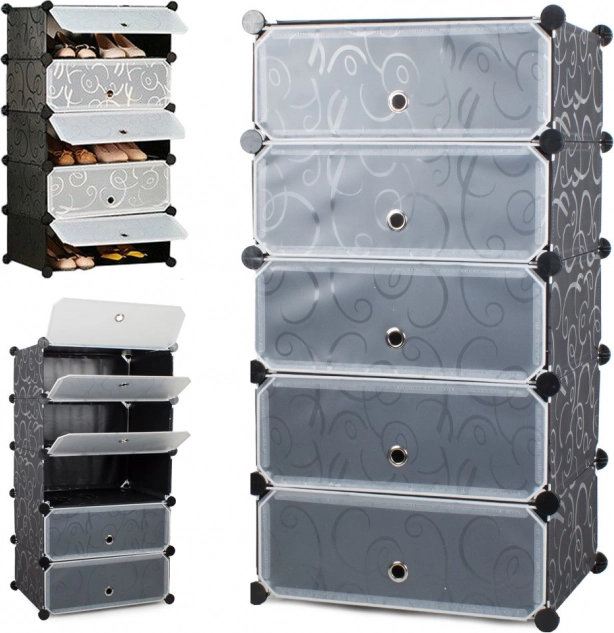 Omara za čevlje ima 5 polic, ki jih je možno fleksibilno zlagati v višino ali razporediti eno ob drugi glede na prostor in potrebe. Konstrukcija je lahka in stabilna, kar olajša rokovanje in montažo. Zahvaljujoč prozornim okencem hitro in enostavno najdete, kar iščete. Material omare je vodoodporen in ga je mogoče brez težav čistiti.