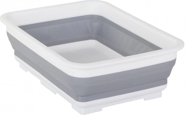 Zložljiva silikonska posoda s prostornino 9 litrov je idealna za vsak dom z omejenim prostorom. Zasnovana je tako, da se prilega vsakemu enojnemu pomivalnemu koritu in lahko služi tudi kot deska za rezanje. Stabilna konstrukcija zagotavlja, da se ne prevrne.