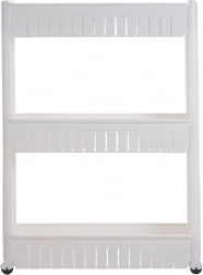 Regal lahko prilagodite svojim potrebam – uporabite 1 do 3 police glede na trenutno rabo. Nosilnost ene police do 6 kg zagotavlja zanesljivost pri vsakodnevni uporabi. Nevsiljiva bela barva se poda večini interierjev in poudari čist, organiziran videz.