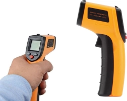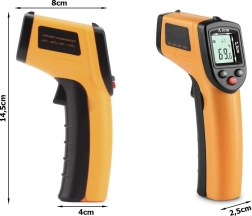 Infrardeči termometer omogoča natančno merjenje temperature na težko dostopnih mestih zahvaljujoč laserskemu kazalcu, ki določa natančno mesto merjenja. Je zelo vsestransko uporabno v avtomobilski, strojni, gradbeni, hladilni, gastronomski in prehrambeni industriji.