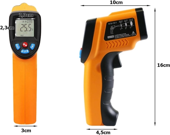 Brezstični IR termometer je idealen za avtomobilsko, strojno, gradbeno, hladilno ter gastronomsko in živilsko industrijo. Laserski merilnik določi točno merilno mesto, hitra odzivnost in osvetlitev zaslona zagotavljata udobno uporabo v delavnici in na terenu.
