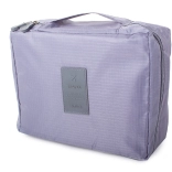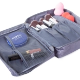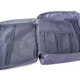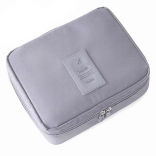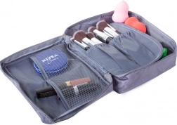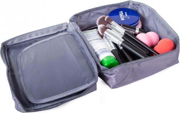 Ta sivi potovalni organizator za kozmetiko zagotavlja dovolj prostora za vse vaše potrebe. Ima eno glavno pregrado in izvlečno komoro z dvema žepoma zaprto z suho zadrževalko, kar omogoča povečanje kapacitete. Poleg tega vsebuje dva mrežasta žepa za drobnarije.