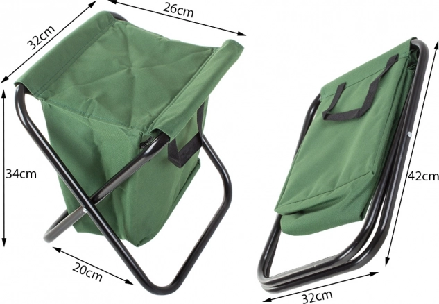 Stolček se hitro zloži in razpre, v zloženem stanju je kompakten in enostaven za prenašanje. Ročaji olajšajo ravnanje, zelena barva pa se odlično zlije z naravo. Idealen za ribolov, izlete, festivale, vrt in plažo.