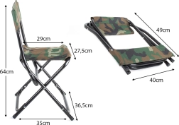 Ta vzdržljiv pohodni in ribiški stol v maskirnem videzu združuje stabilen kovinski okvir in trpežno tkanino za zanesljivo in udobno sedenje v naravi. Odlično se poda za ribiške izlete, kampiranje, festivale in za na vrt.