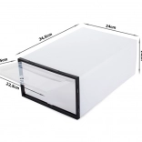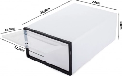 Večnamenska škatla za čevlje je idealna za vsakodnevno uporabo in dolgoročno shranjevanje. S prozorno loputo imate vsebino vedno na očeh, prezračevalne odprtine pa zagotavljajo kroženje zraka. Ko je ne uporabljate, jo preprosto zložite na ravno.