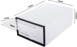Organizirajte svojo obutev pametno in elegantno. Ta plastična škatla za čevlje ima nagibna prozorna vrata, tako da vsebino vidite na prvi pogled. Prezračevalne odprtine preprečujejo zadrževanje vlage in neprijetne vonjave. Ko škatle ne potrebujete, jo preprosto zložite na ravno.