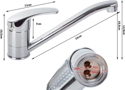 Gibljiv izliv dolžine 22 cm zagotavlja enostavno manipulacijo z vodo, kar boste cenili pri pomivanju posode ali polnjenju večjih posod. Poleg tega pipa omogoča enostavno montažo neposredno na pomivalno korito, kar zagotavlja stabilnost pri uporabi.