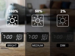 Nastavite tri neodvisne alarme in izberite svetlost zaslona v treh korakih: 100 %, 50 % ali 2 % za dan in noč.