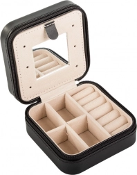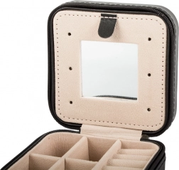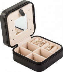 Trdna konstrukcija, mehko oblazinjenje in varno zapenjanje na zadrgo ščitijo vaš nakit pred poškodbami in izgubo. Zaradi kompaktnih mer 10 × 10 × 5 cm se zlahka prilega torbici ali ročni prtljagi – idealno tudi kot okusno darilo.