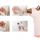 V vgrajeno posodico lahko nalijete vodo, micelarno vodo, tonik ali lahko serum. Naprava ima dvostopenjsko uravnavanje moči, informativno LED-indikacijo in polnjenje prek USB. Zaradi nizke teže in kompaktnih mer jo zlahka vzamete v torbico ali potovalno torbo ter si privoščite nego kadarkoli in kjerkoli.