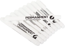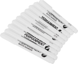 Beli trajni označevalnik je idealna izbira za obnovitev napisov na pnevmatikah in izrazito označevanje na temnih podlagah. Zahvaljujoč drobni konici 1 mm ustvarja natančne linije in čiste zapise. Hitro sušeče črnilo na vodni osnovi zagotavlja dolgo življenjsko dobo in je odporno proti vodi.