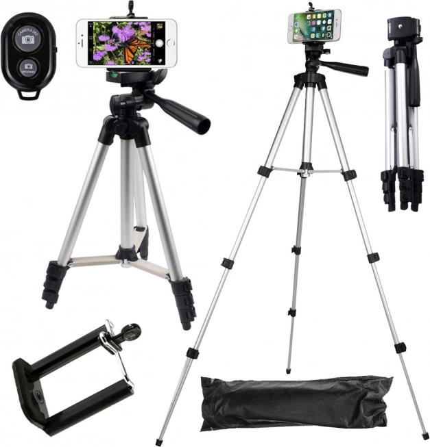 - Vsebina paketa: stativ, nosilec za telefon, Bluetooth daljinski upravljalnik, prenosna torbica, originalna embalaža