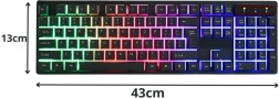 Stilska igralna tipkovnica polne velikosti z numeričnim delom ponuja tihe membranske tipke, RGB osvetlitev in udobno tipkanje ter igranje več ur. Zahvaljujoč anti-ghostingu, odpornost proti politju in preprostemu priklopu USB plug & play je idealna za igralce in delo v pisarni.