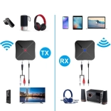 Odkrijte udobje brezžičnega predvajanja glasbe z našim bluetooth avdio sprejemnikom in oddajnikom 2v1. Ne glede na to, ali želite predvajati glasbo s telefona prek avtoradia ali povezati brezžične slušalke s televizorjem, ta adapter to omogoča zahvaljujoč dvema načinoma – RX in TX.