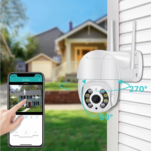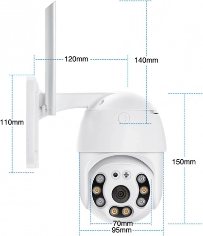 Zunanja WiFi kamera je opremljena z zornimi koti do 270 stopinj horizontalno in 90 stopinj vertikalno, kar zagotavlja široko območje pokritosti. Zahvaljujoč nočnemu načinu z infrardečo tehnologijo in LED diodami bo slika podrobna tudi v popolni temi.<rm>