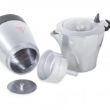 Električni kavni aparat izpolnjuje vse potrebe ljubitelja kave. Izdelan je iz trpežnega aluminija, kar zagotavlja lahkotnost in dolgo življenjsko dobo. Ergonomski plastični ročaj preprečuje opečenje.
