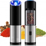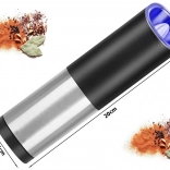 Uživajte v preprostem, čistem in natančnem začinjanju z električnim gravitacijskim mlinčkom. Izdelan je iz kakovostnih materialov, ima moderno črno-srebrno izvedbo in zahvaljujoč prozornemu vsebniku vedno vidite, koliko začimb je še na voljo. Integrirana LED luč se vklopi ob nagibu in vam pomaga začiniti jedi tudi pri šibki osvetlitvi.