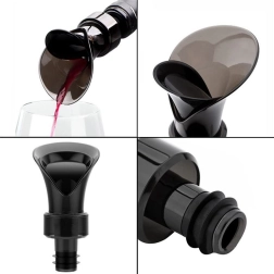 Visokokakovostna izvedba iz trpežne plastike in gume je primerna za večino steklenic s premerom 20–24 mm. Minimalistična črna zasnova se poda vsakemu domu in baru ter olajša strežbo s profesionalnim rezultatom.