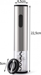 Odpirač napajajo 4 baterije AA, kar zagotavlja svobodo brez kablov. V pakiranju najdete tudi rezalnik folije za preprosto odstranjevanje aluminijaste ali plastične folije na grlu steklenice.