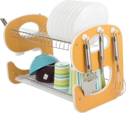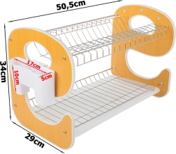 Zgornja polica sprejme do 14 krožnikov, spodnja je idealna za sklede, skodelice in kozarce. Vse se hitreje posuši in ostane pregledno urejeno.