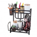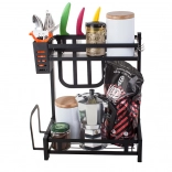 Organizator je opremljen s 4 kavlji za obešanje krp in kuhinjskih pripomočkov, kot so žlice za juho in tolkači. Dizajn zagotavlja funkcionalnost ter hkrati služi kot okras vaše kuhinje.