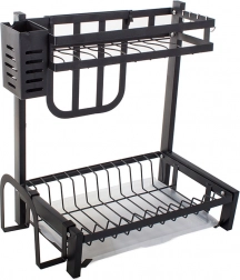 Dvostopenjski odcejevalnik za posodo je izdelan iz visokokakovostne kovine s prašnim lakiranjem, da prenese vlago in intenzivno uporabo. Zahvaljujoč stabilni konstrukciji se odcejena voda zbira v plastični posodici in ne poškoduje kuhinjskega pulta.