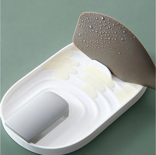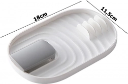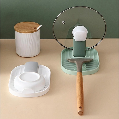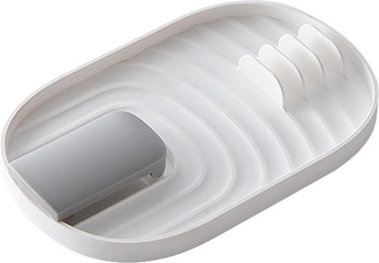 Izdelan je iz odporne plastike in ponuja prostor za do 4 žlice in pokrovke, kar omogoča preprosto in organizirano odlaganje med kuhanjem. Poleg tega preprečuje nabiranje ostankov in zagotavlja higiensko okolje.