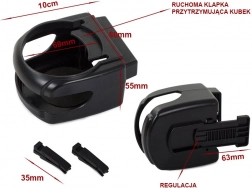 Zaradi kompaktnih mer in odporne plastike je držalnik primeren za večino avtomobilov ter idealen za pločevinke, lončke in manjše steklenice. Enostavno čiščenje in njegovo univerzalno črno izvedbo ne kazi videza armaturne plošče.