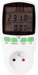 Ta digitalni vatmeter zagotavlja natančno merjenje porabe energije in stroškov. Velik in pregleden zaslon omogoča, da na prvi pogled preverite vse ključne parametre, kot so trenutna napetost, frekvenca ali poraba toka.