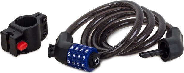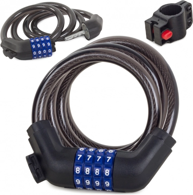 Zanesljiva kombinacijska kolesarska ključavnica z jeklenim kablom in trpežnim silikonskim plaščem zagotavlja varno zaklepanje vašega kolesa, vrat ali ograje. Zahvaljujoč štirimestni kodi ni skrbi s ključi, vremensko odporna zasnova ščiti pred korozijo, priložen nosilec za okvir pa olajša prevoz.