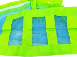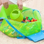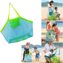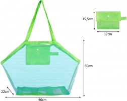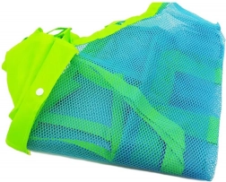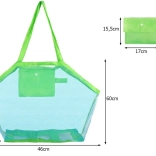 Mrežasta konstrukcija ohranja vsebino prezračeno, pospeši sušenje in pusti pesku prosto prehajati – idealno za plažo in bazen.