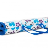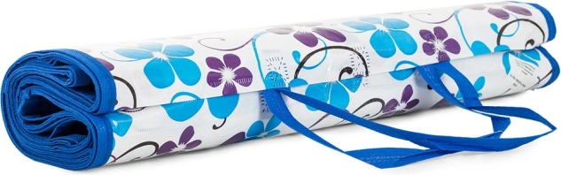 Podloga se zlahka zloži in zaveže, zato v zloženem stanju zavzame zelo malo prostora, ima pa tudi praktičen ročaj za prenašanje – videti je kot majhna torbica.