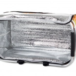 Izolacijska termoplast z reflektivno folijo zanesljivo ohranja toploto ali hlad, zato boste hrano in pijačo uživali svežo tudi po daljšem času. Zapiranje z zadrgo ščiti vsebino, ojačano dno pa zagotavlja stabilnost pri prenašanju.