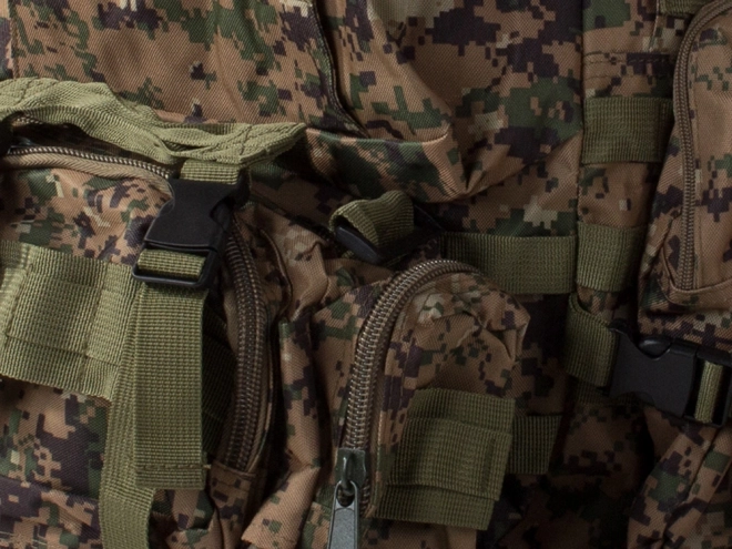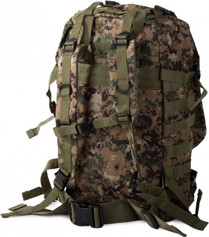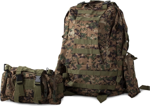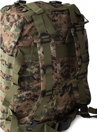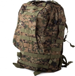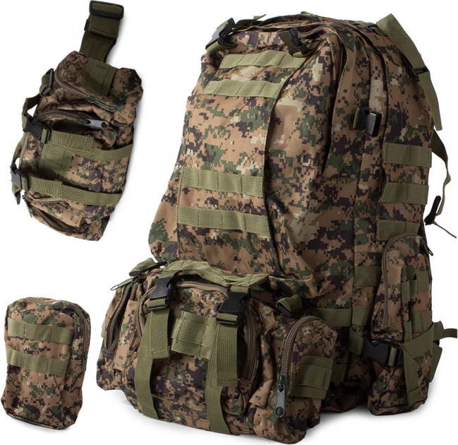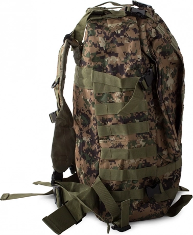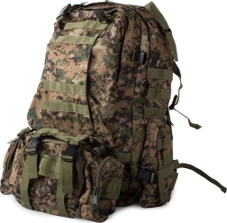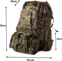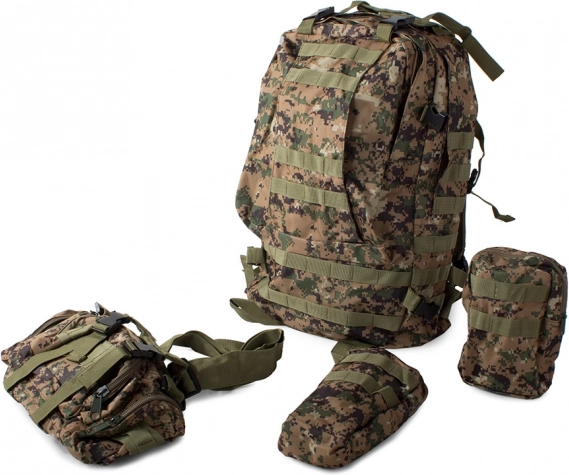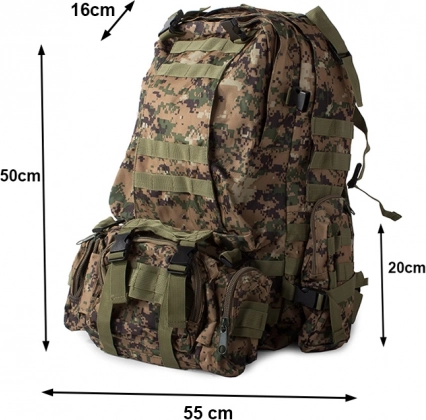 Ta nahrbtnik ponuja velik glavni predal z dodatnimi razdelki, vključno s snemljivima stranskima torbicama in snemljivo ledvico, ki jo je možno nositi samostojno. Sistem MOLLE omogoča dodajanje dodatnih žepov in modulov.