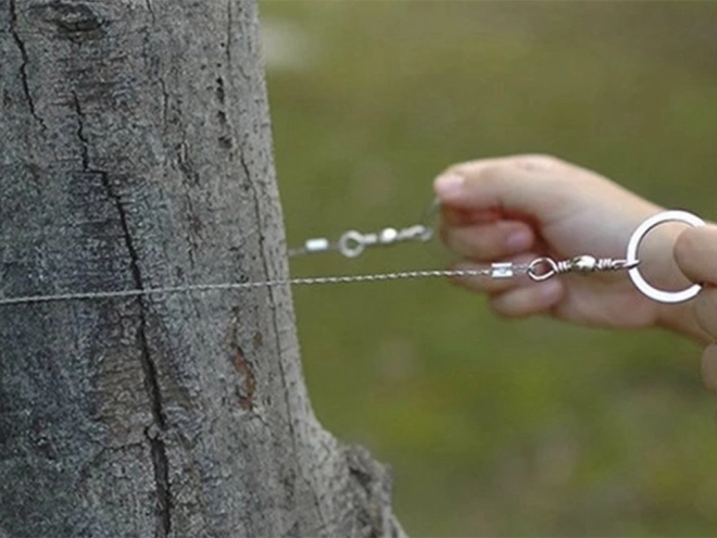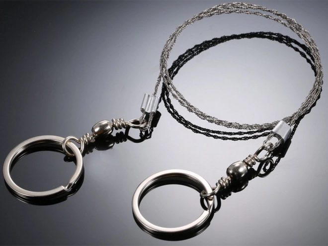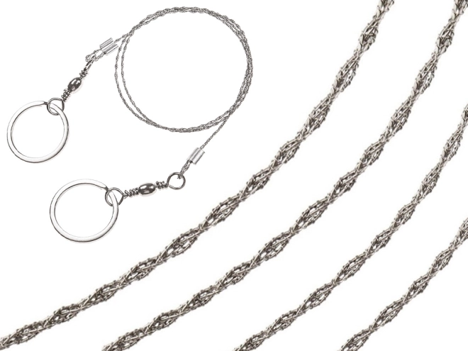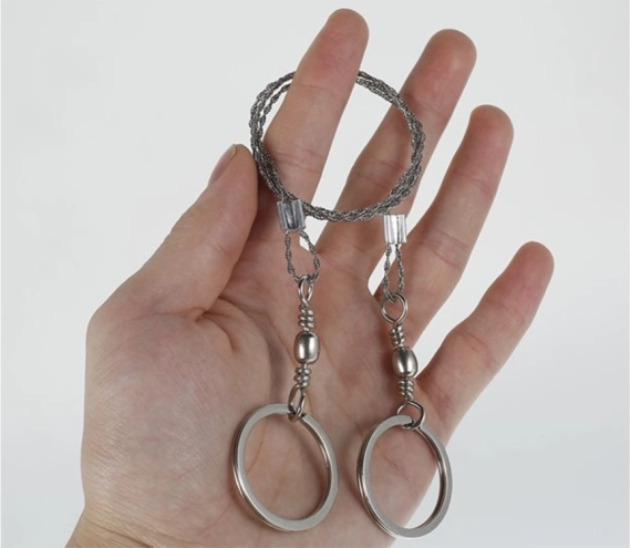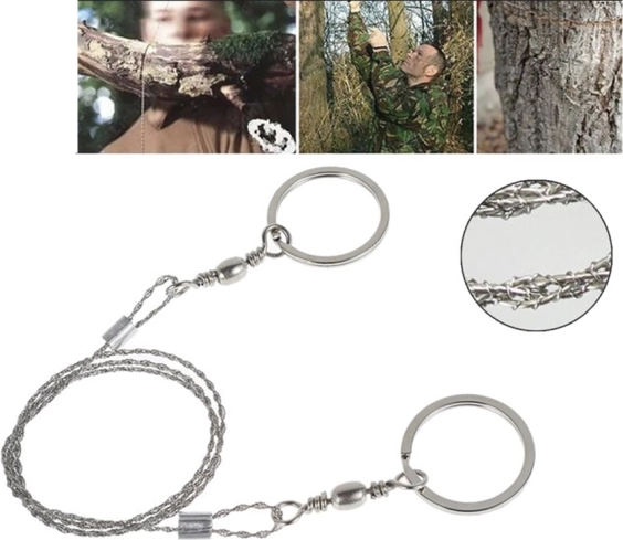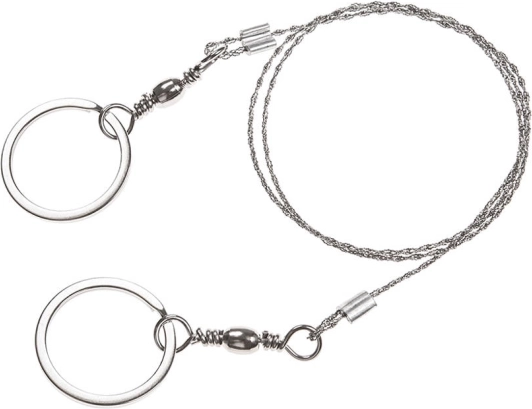 Praktična žična žaga je nujen del vsake survival, EDC in kamping opreme. Pleten nerjavni kabel s tisoči drobnih zob zagotavlja hiter in učinkovit rez pri minimalni teži. Kovinske obročke lahko držite neposredno ali nanje pritrdite lesene palice za še udobnejše delo.