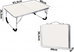 Nizka teža 1,3 kg in kompaktne mere po zlaganju omogočajo, da mizico vzamete kamor koli – kamp, piknik, vrt ali vikend na podeželju.