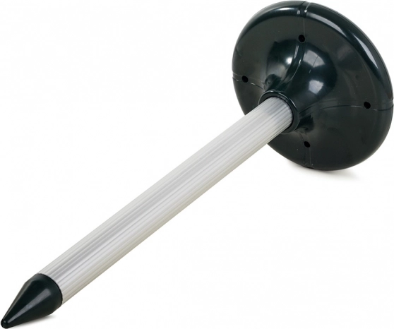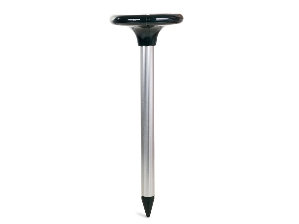 Namestitev je hitra: zapičite konico v zemljo in pustite, da sonce opravi svoje. Za večje površine priporočamo uporabo več enot z dovolj gostim razporedom. Najboljši doseg boste dosegli v vlažni ali ilovnati zemlji; v suhi in peščeni se lahko učinkovito območje zmanjša.