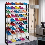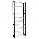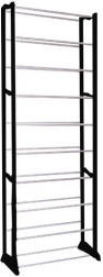 Nastavljivo število nivojev 1–10 in razmik 14 cm omogočata prilagoditev prostora različnim tipom obutve. Črn okvir s kromom deluje elegantno v vsakem prostoru.
