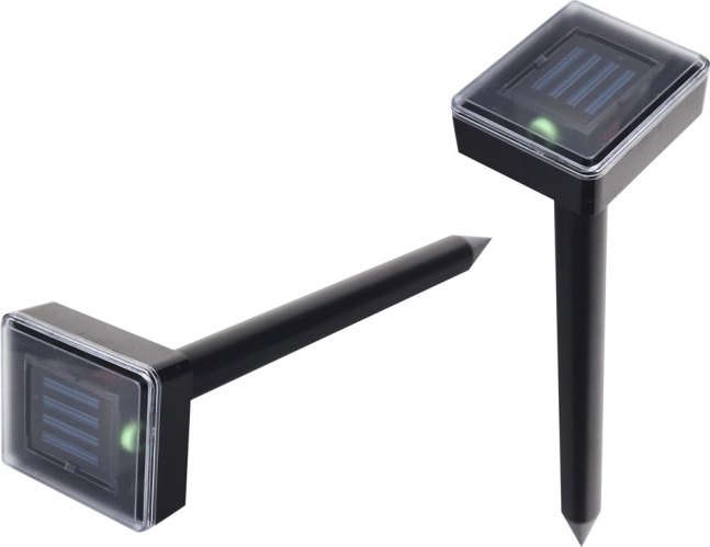 Solarni odganjalec ščiti trate, gredice, sadovnjake in rastlinjake pred krti, voluharji in poljskimi miškami. Vgrajeni generator vsakih 30 sekund oddaja moteče signale 400–1000 Hz, spremljane z vibracijami, ki škodljivce učinkovito izrinejo iz zaščitenega območja. Zahvaljujoč solarnemu napajanju deluje povsem brez kablov in brez zamenjave baterij.
