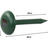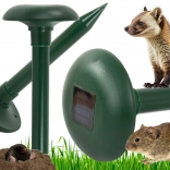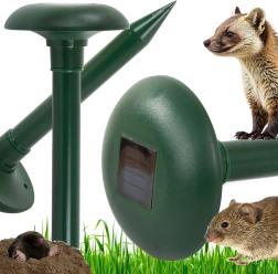 Ohranite vrt brez rovov in krtin s tem zmogljivim solarnim odganjalcem. Oddaja vibracije in zvočne impulze v intervalih 30 s, ki učinkovito motijo krte, voluharje in poljske miši. Naprava je okolju prijazna, varna za otroke in hišne ljubljenčke, napajana s solarnim panelom in ščiti površino do 1000 m².