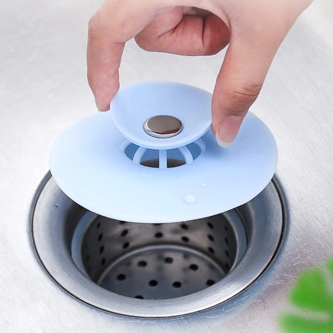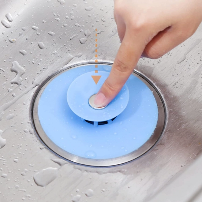 Silikonski zamašek in cedilo za pomivalno korito ter kad – Modra